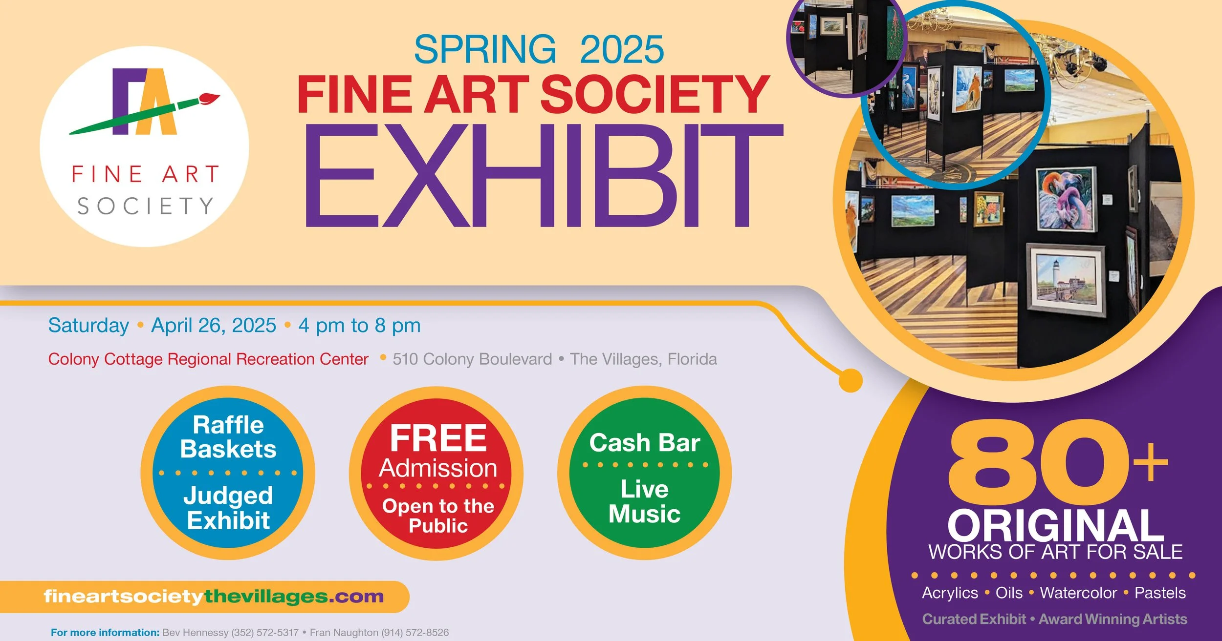 Our April 26 exhibition was a huge success with over 800 attendees who joined us for an evening of fine art for sale by 60 member artists and 130 paintings in a gallery exhibition. Patrons enjoyed music, cash bar, snacks, and themed raffle baskets in addition to the fabulous artwork.